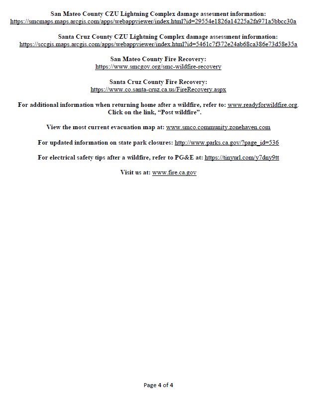 INCIDENT UPDATE: CZU LIGHTNING COMPLEX, AUG 30, 2020, 7AM and CAL
