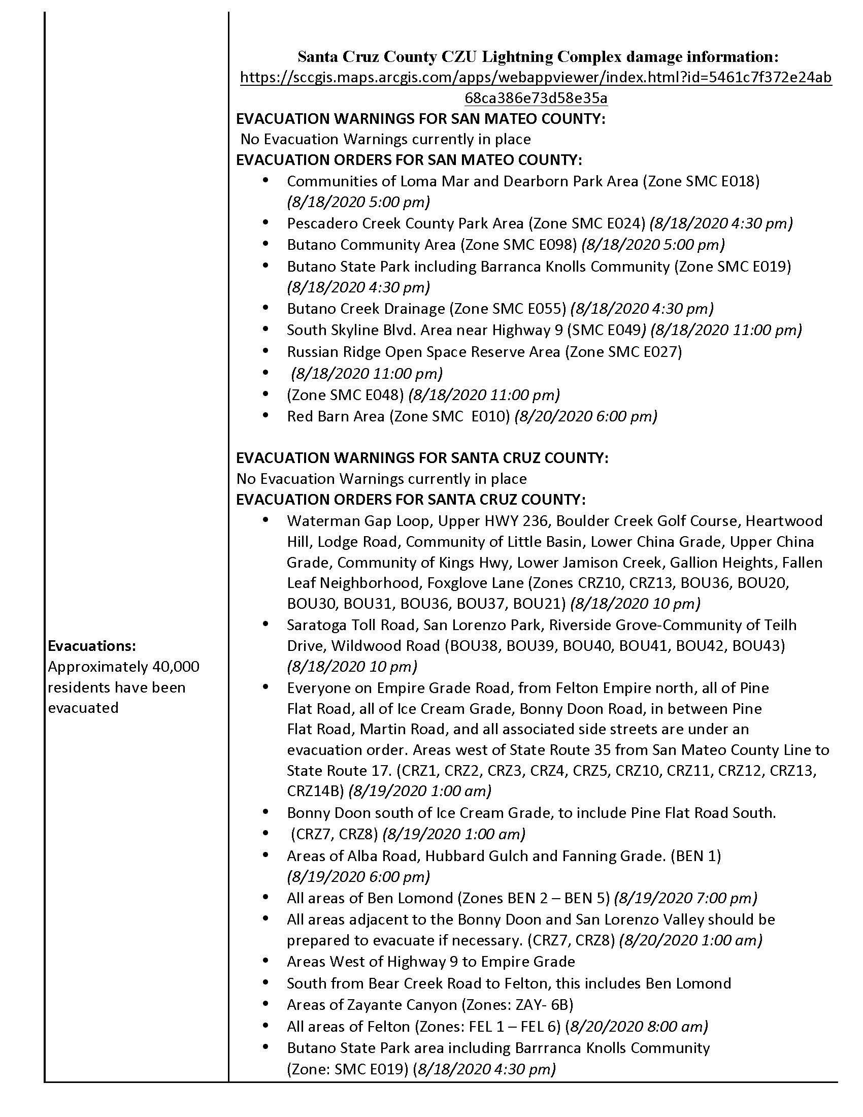 INCIDENT UPDATE: CZU LIGHTNING COMPLEX, AUG 30, 2020, 7AM and CAL