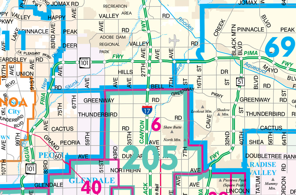 Metropolitan Phoenix Arterial Streets ZIP Code Zones Notebook Map